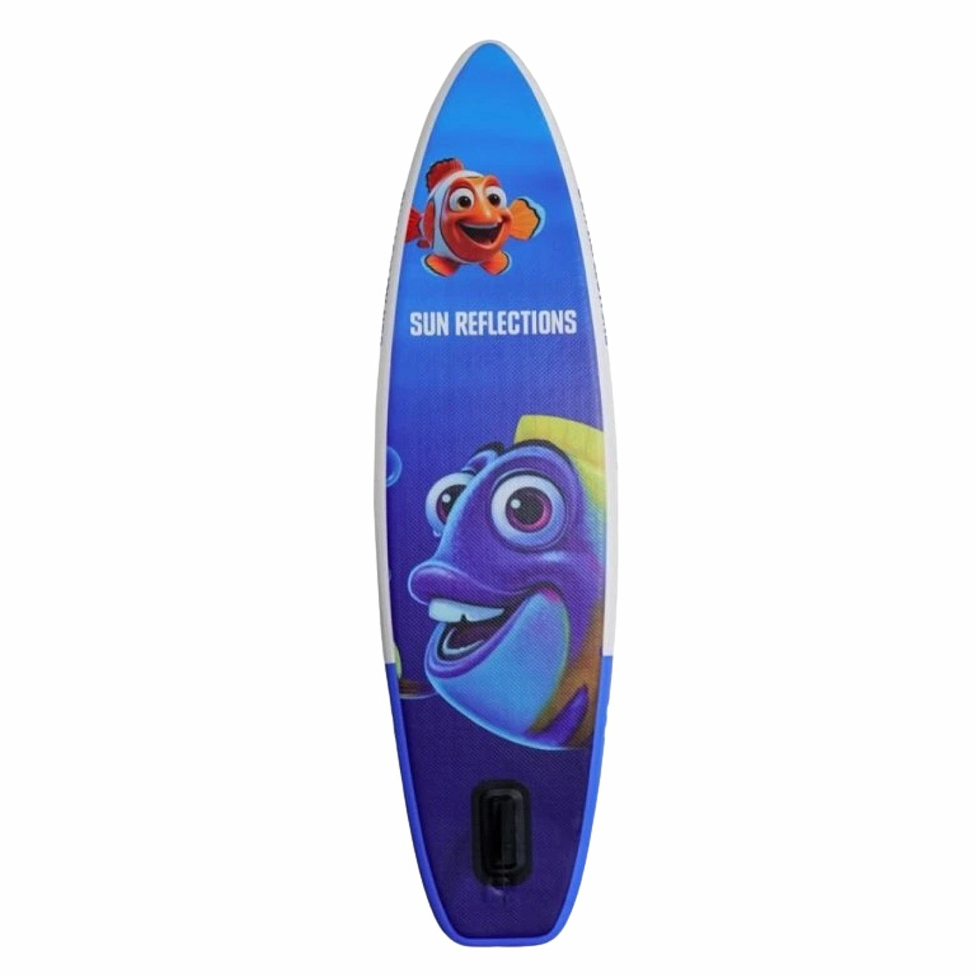 Nízka váha dosky umožní deťom paddleboard preniesť k vode. Deti určite poteší rozprávkový motív ryby, ktorý paddleboardu pridáva na atraktivite. Paddleboard pre deti je teda prispôsobený deťom vo všetkých smeroch a budú ho rady využívať na svojich výpravách. Súčasťou detského paddleboardu je aj pádlo, popruh a taška na paddleboard.