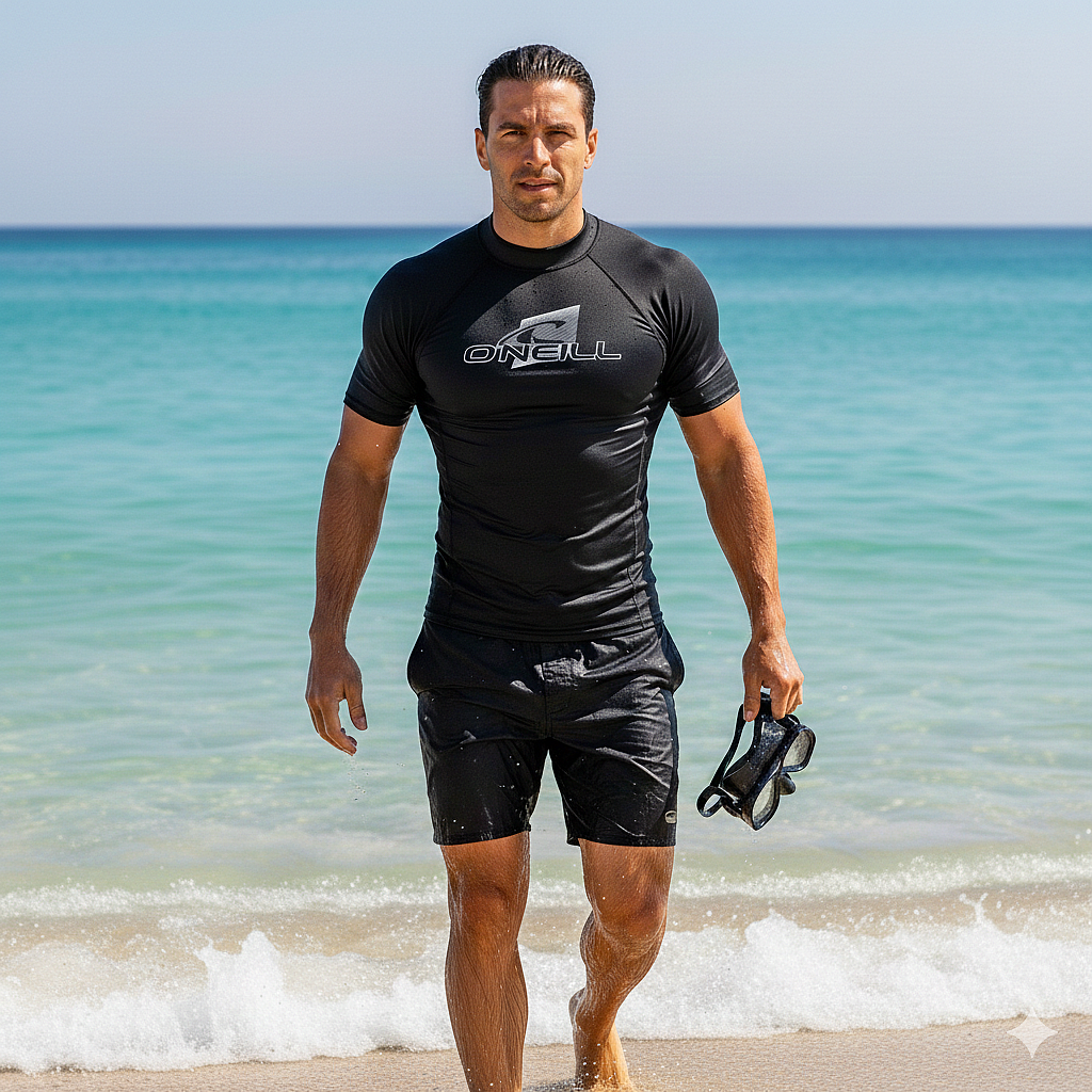 Toto tričko s UV ochranou UPF50+ je vyrobené z prémiových, odolných materiálov s plochými švami, ktoré eliminujú odieranie, tento rash guard ponúka maximálny komfort a výkon vo vode aj mimo nej.