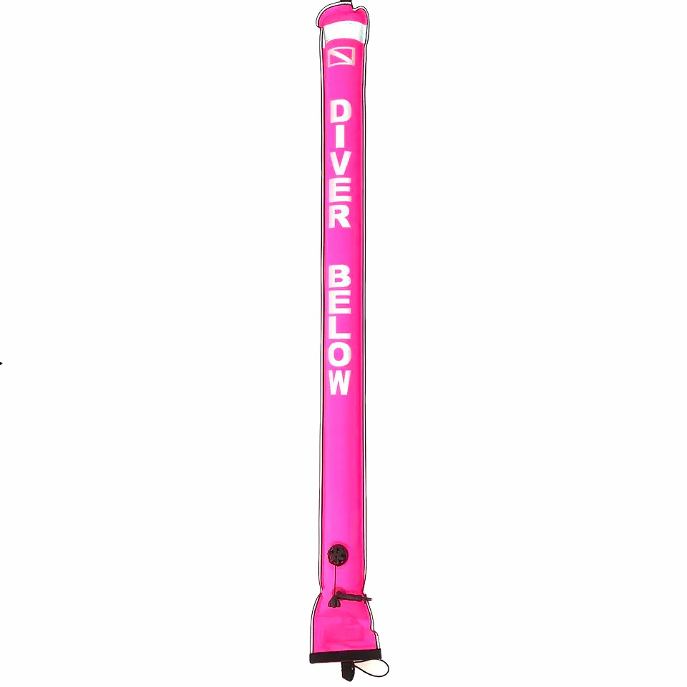 Uzavretá potápačská bójka drží tvar a jej dĺžka je zámerná, aby bola dobre vidieť na vode aj vo vlnách.